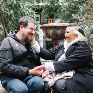 A Naira tinha agendado comigo um ensaio em Santiago e, uma certa noite, o noivo dela entra em contato comigo escondido pedindo que eu fizesse as fotos do pedido que ele iria fazer no momento do nosso ensaio. Dentro do roteiro que eu já tinha fechado com a Naira, precisei "adaptar" e descobri o charmoso jardim do Museo de Arte Colonial San Francisco. O pedido de Naira e Edson aconteceu em julho.